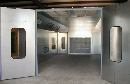 - 30” diameter double ring exhaust fan with non-sparking blades. Adjustable pulley for air flow adjustment. Low decibel rating offers greater working comfort.